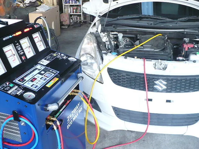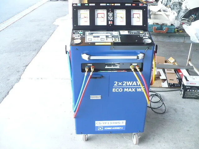 エアコンガスを回収しフィルターを通って水分などを除去し車に戻します。戻す量も適正量に設定して作業しますので足りない分は補充されます。作業時間は車によって変わりますが40分~。料金は8,250円~(ガス200g未満まで、200gを超えた場合1,320円加算それ以降200gごとに1,320円加算)となります。